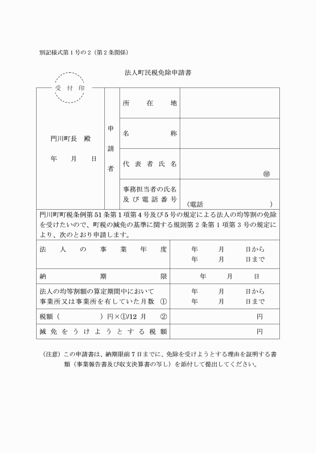 第1条 この規則は,門川町町税条例(昭和29年条例第7号。以下「条例」という。)に規定する町民税,固定資産税及び入湯税の減免に関し,その基準を定めるものとする。